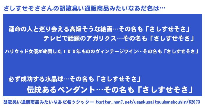 | 料理風あだ名 | 『さしすせそさのカルパッチョ風』 |