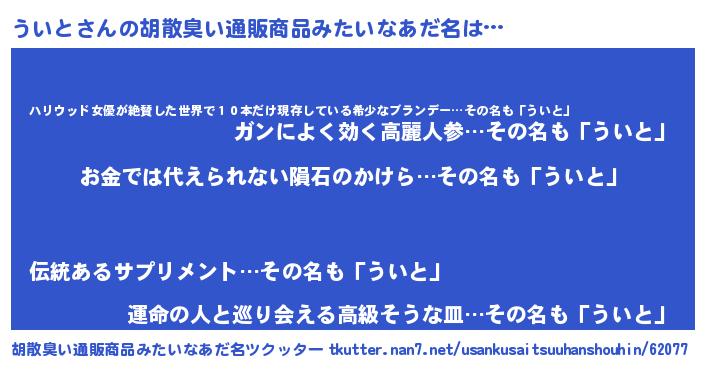 | ヘコむあだ名 | 『なまこ酢』『ういお』『ういと(笑)』 |