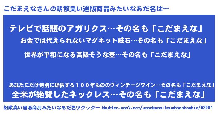 | ヘコむあだ名 | 『なまこ酢』『こだっ子』 |
