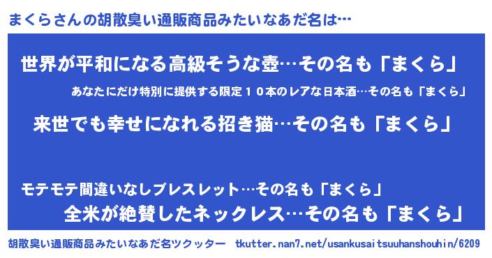 | ヘコむあだ名 | 『まくら(笑)』『豆乳』『まく太郎』 |