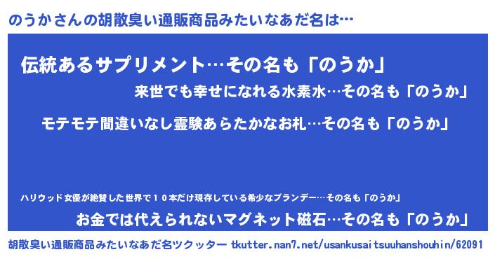| 男性向けラノベタイトル風あだ名 | 『のうかに滅ぼされるだけの簡単なお仕事です』 |