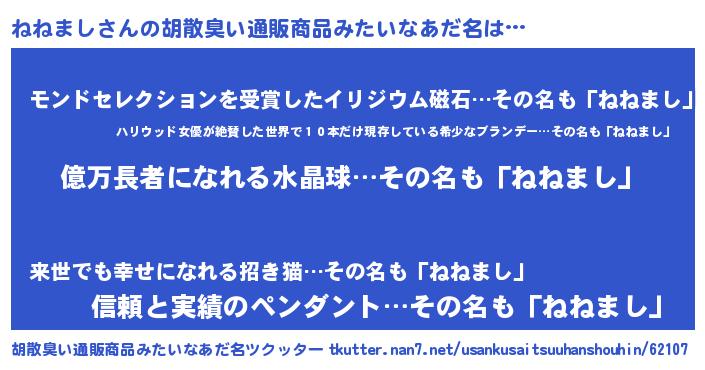 | 欧米人風あだ名 | 『トリンドルねねまし』 |