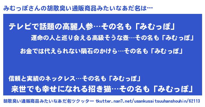 | ヘコむあだ名 | 『みむっぽ(震え声)』『豆乳』 |