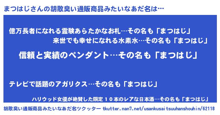 | 意味不明あだ名 | 『とにかく怪しいまつはじ』 |