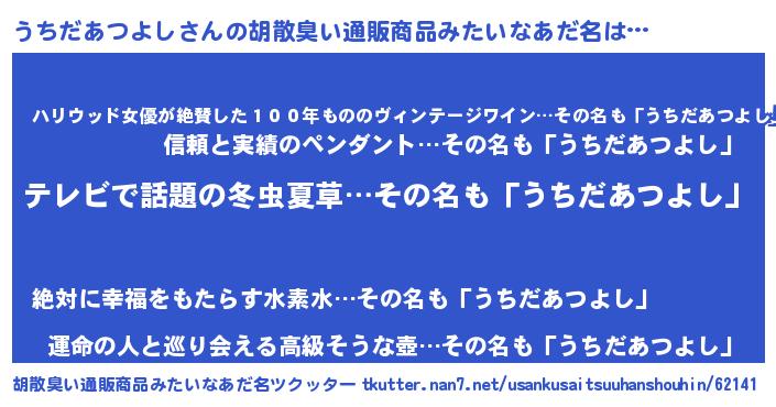 | 肩書あだ名 | 『うちだあつよし総統』 |
