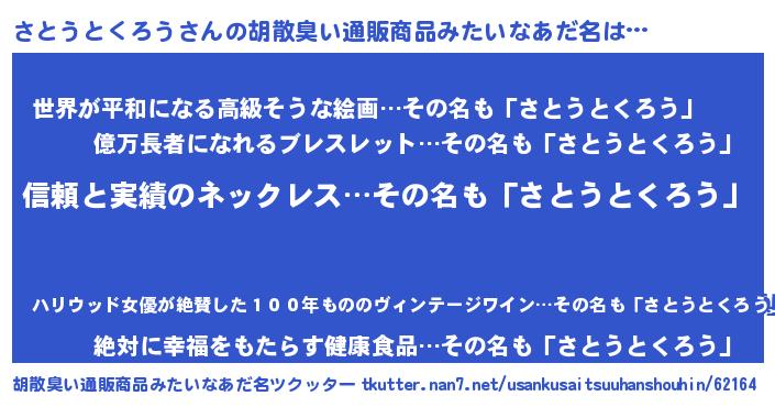| 意味不明あだ名 | 『とにかく怪しいさとうとくろう』 |