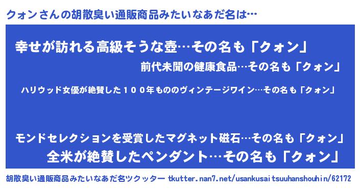 | ヘコむあだ名 | 『つくし』『クォっちょ』『クォもー』 |