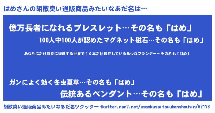 | ヒーロー風カッコイイあだ名 | 『仮面ハメダー』『スーパーハメ』 |