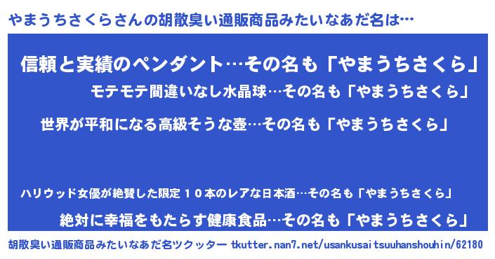やまうちさくらさんの胡散臭い通販商品みたいなあだ名をツクッター!