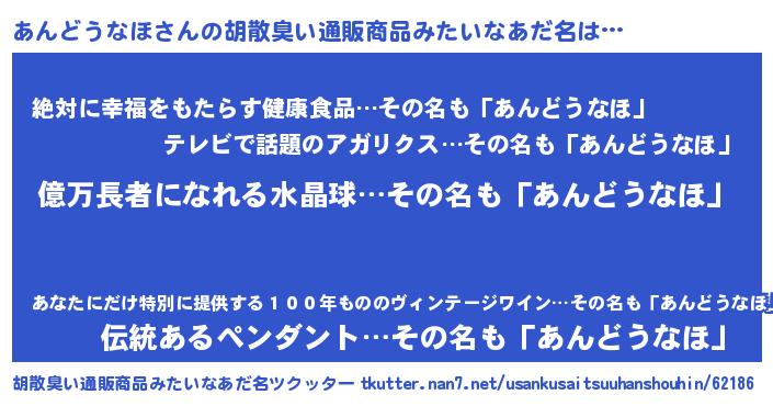 | ヘコむあだ名 | 『あんにゅー』『あんどうなほ(爆)』 |