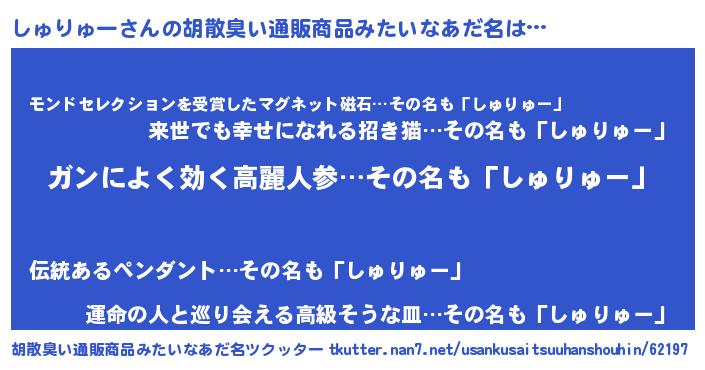 | 肩書あだ名 | 『しゅりゅー閣下』『しゅりゅー教授』 |
