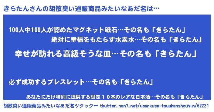 きらたんさんの胡散臭い通販商品みたいなあだ名をツクッター!