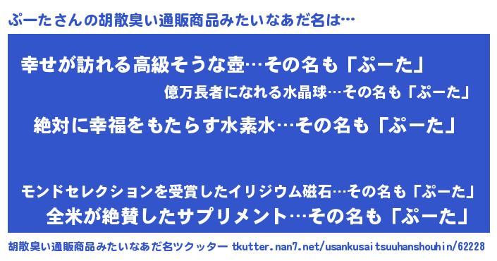 | 意味不明あだ名 | 『永久保存ぷーた』『ぷーたフォーエバー』 |