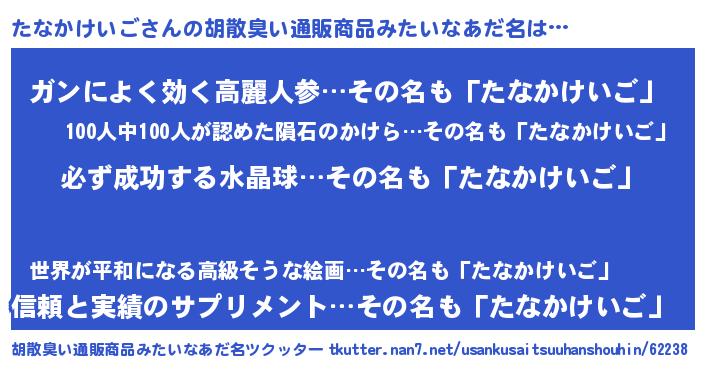 | 肩書あだ名 | 『たなかけいご店長』『たなかけいご閣下』 |