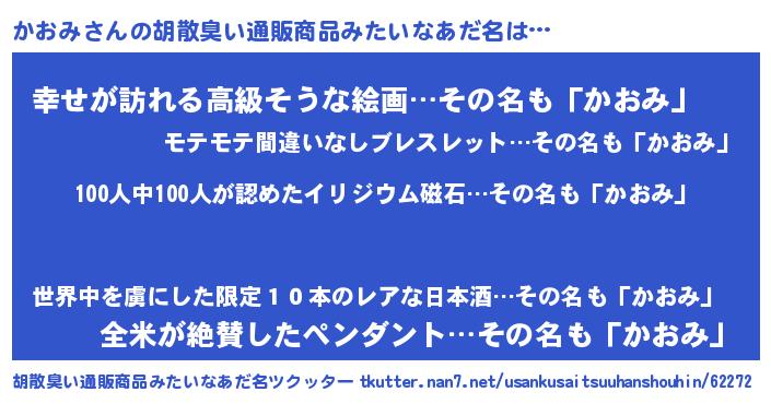 | ヒーロー風カッコイイあだ名 | 『正義の使者かおみ』『炎刃騎士カオ』 |