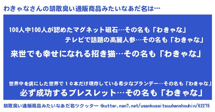 | ヘコむあだ名 | 『わきゃな(笑)』『わきにー』『牛乳』 |
