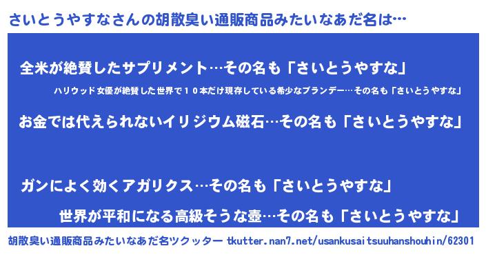 | 意味不明あだ名 | 『眠気覚ましガムさいとうやすな味』 |