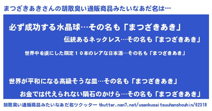| 意味不明あだ名 | 『住所不定無職まつざきあき(53歳)』 |