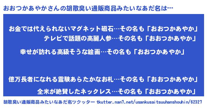 | 意味不明あだ名 | 『おおつかあやかフォーエバー』 |