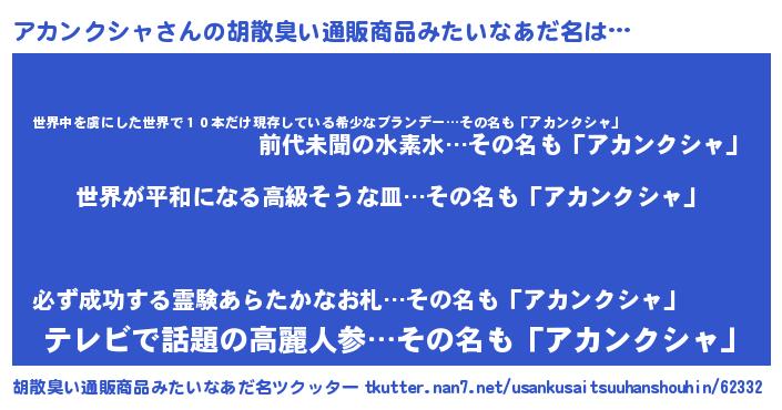 | 欧米人風あだ名 | 『アカンクシャクリステル』 |