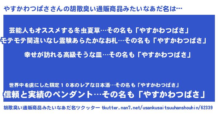 | 意味不明あだ名 | 『やすかわつばさフォーエバー』 |