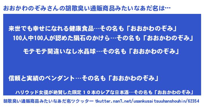 | ヘコむあだ名 | 『おおふぇ~』『おおかわのぞみ(笑)』 |