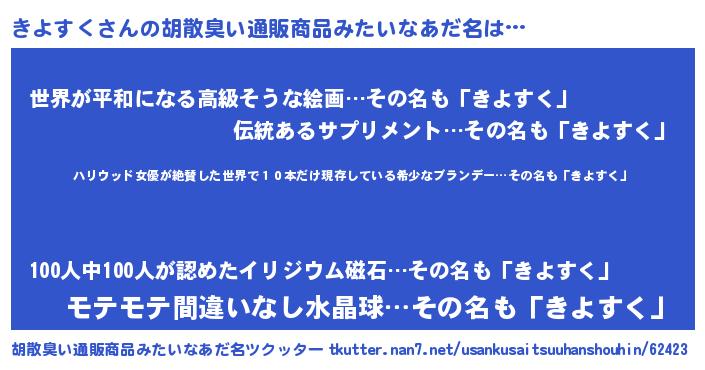 | 意味不明あだ名 | 『住所不定無職きよすく(91歳)』 |