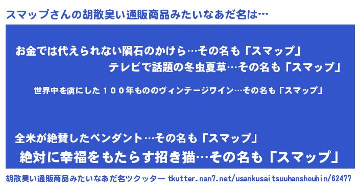 | ヒーロー風カッコイイあだ名 | 『仮面スマダー』『友情の使者スマップ』 |