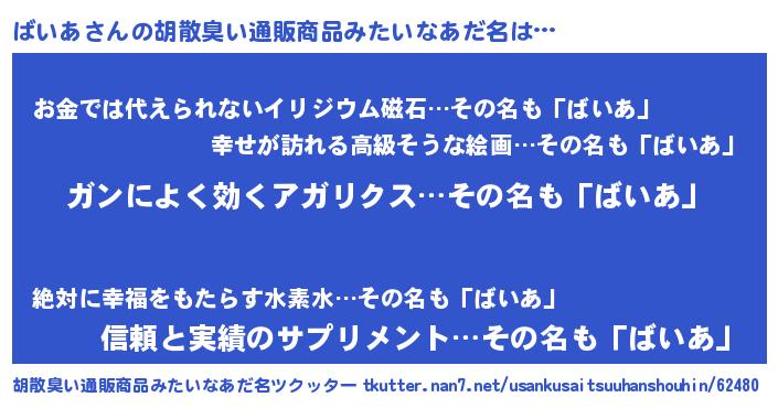 | 意味不明あだ名 | 『自称ばいあ』『眠気覚ましガムばいあ味』 |
