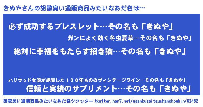 | 意味不明あだ名 | 『永久保存きぬや』『ペロリンきぬや』 |