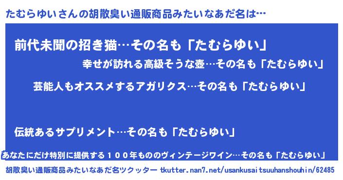 | ヘコむあだ名 | 『たむらゆい(爆)』『レバニラ』 |