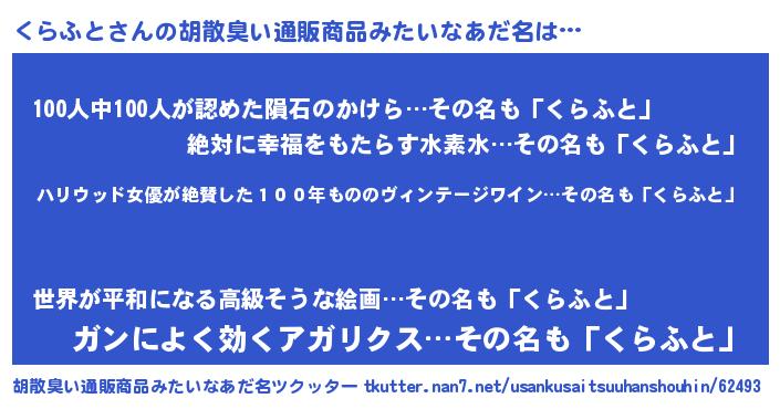 | 意味不明あだ名 | 『住所不定無職くらふと(13歳)』 |