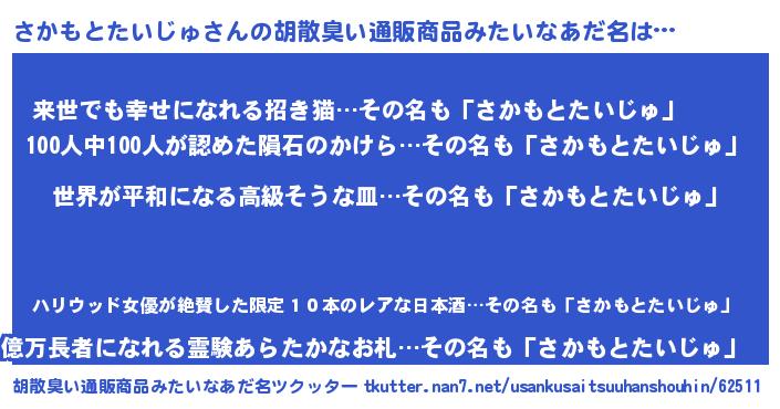 | ヘコむあだ名 | 『なまこ酢』『さかもとたいじゅ(笑)』 |