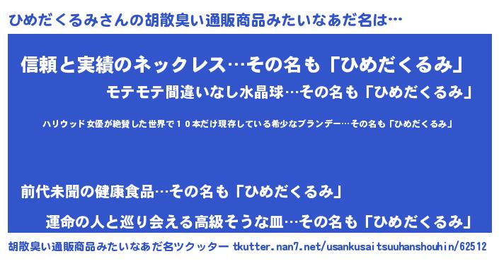 | 男性向けラノベタイトル風あだ名 | 『緋弾のヒメダクルミ』 |