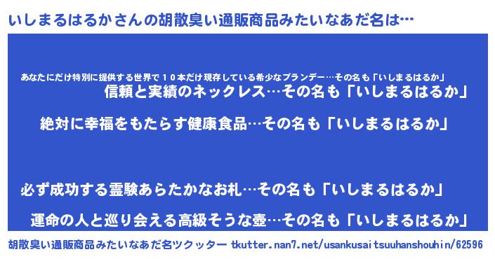 | 男性向けラノベタイトル風あだ名 | 『いしまるはるかという概念が存在しない退屈な世界 』 |