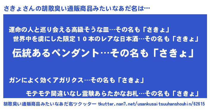 | 意味不明あだ名 | 『とにかく怪しいさきょ』『自称さきょ』 |