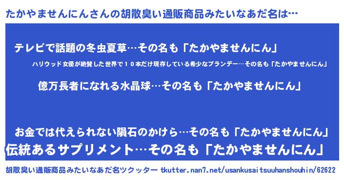 | 男性向けラノベタイトル風あだ名 | 『たかやませんにんに滅ぼされるだけの簡単なお仕事です』 |