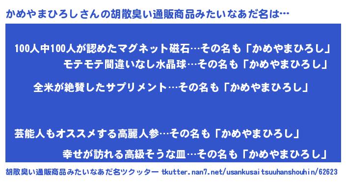 | 欧米人風あだ名 | 『ウサインかめやまひろし』 |