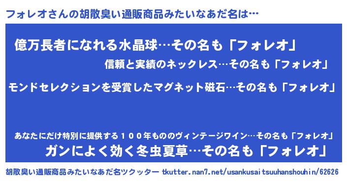 | ヘコむあだ名 | 『フォふぇ~』『フォぷりん』 |