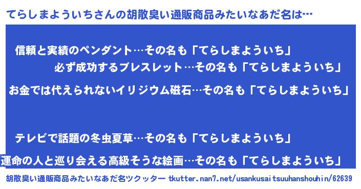 てらしまよういちさんの胡散臭い通販商品みたいなあだ名をツクッター!