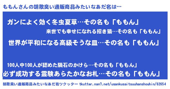 | 意味不明あだ名 | 『ももんフォーエバー』『自称ももん』 |