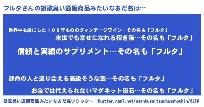| ヘコむあだ名 | 『フル太郎』『フルタ(小並感)』 |