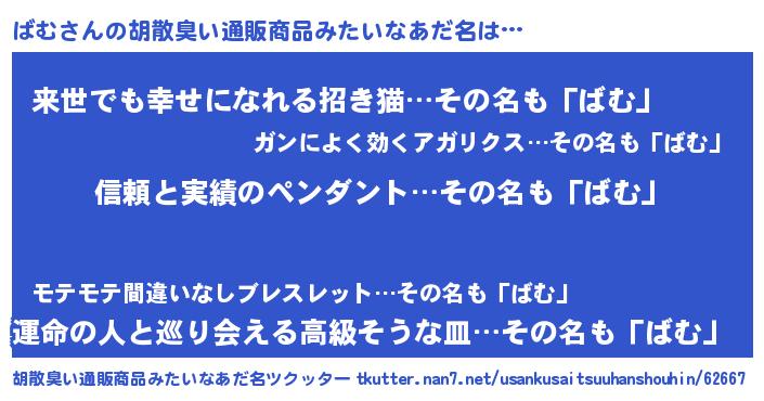 | 意味不明あだ名 | 『とにかく怪しいばむ』『永久保存ばむ』 |