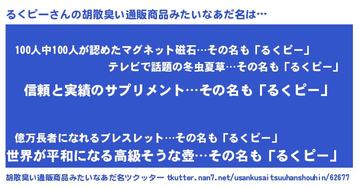 | ヘコむあだ名 | 『るく太郎』『豆乳』『るくにー』 |