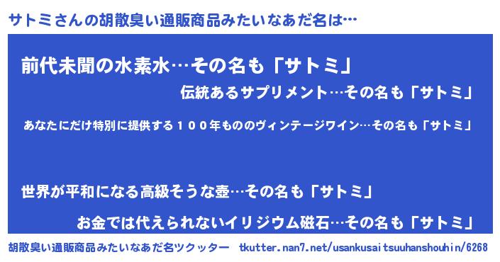 | ヘコむあだ名 | 『サトミ(笑)』『サトっぺ』『豆乳』 |