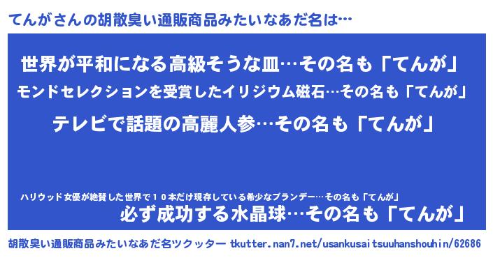 | 男性向けラノベタイトル風あだ名 | 『魔法科高校のてんが』 |