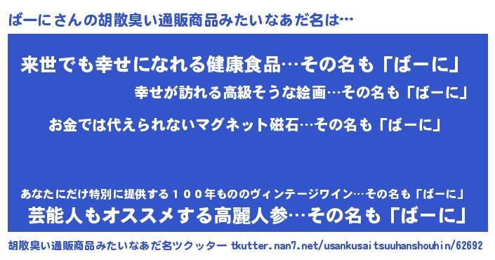 | ヘコむあだ名 | 『ばーに(小並感)』『豆乳』 |