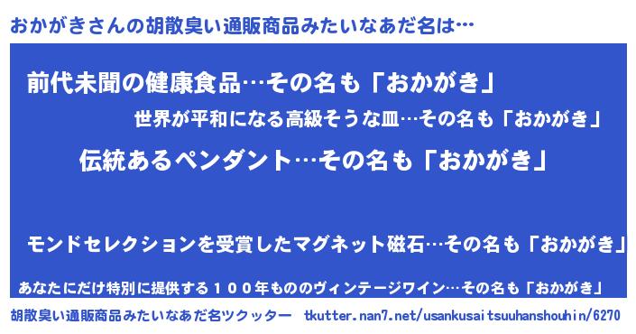 | ヘコむあだ名 | 『おかぷりん』『おかがき(笑)』 |
