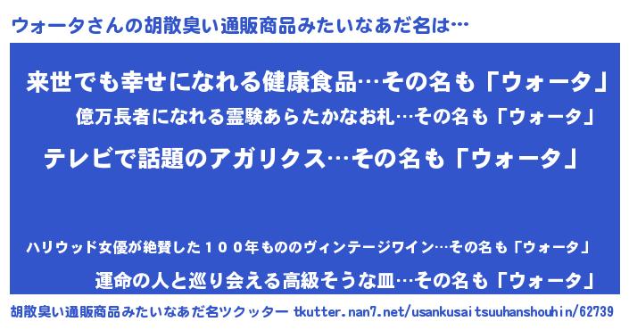 | 意味不明あだ名 | 『自称ウォータ』『永久保存ウォータ』 |
