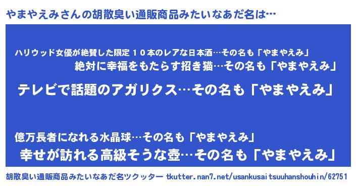 | ヘコむあだ名 | 『なまこ酢』『やまやえみ(笑)』 |